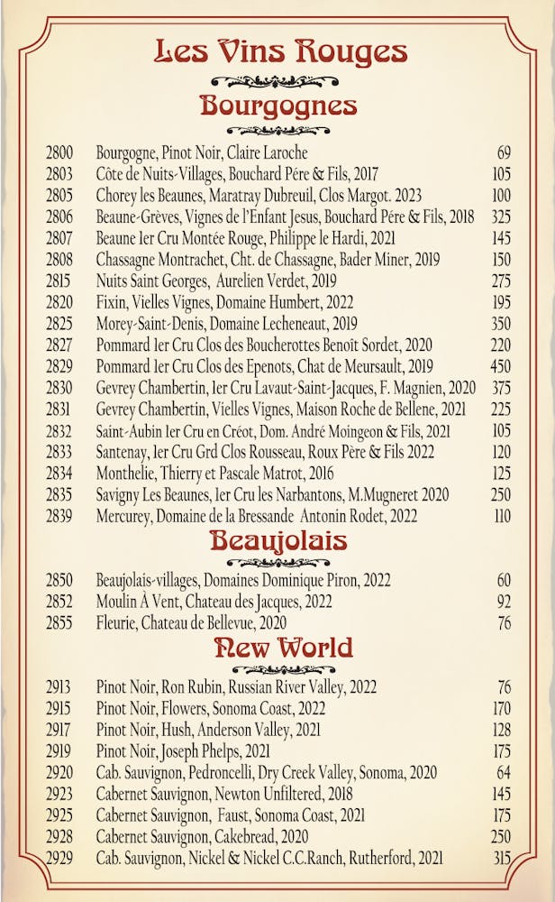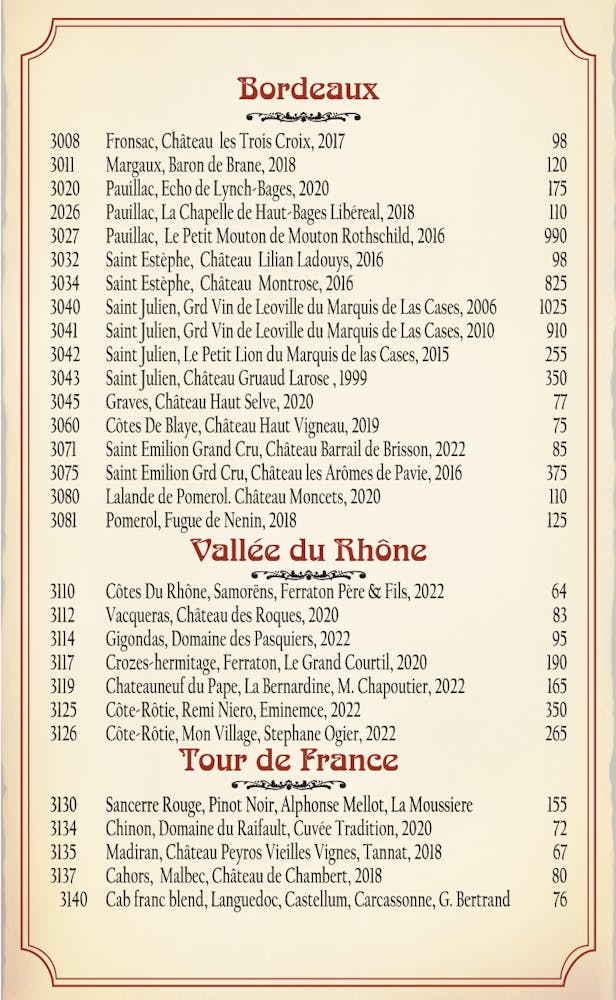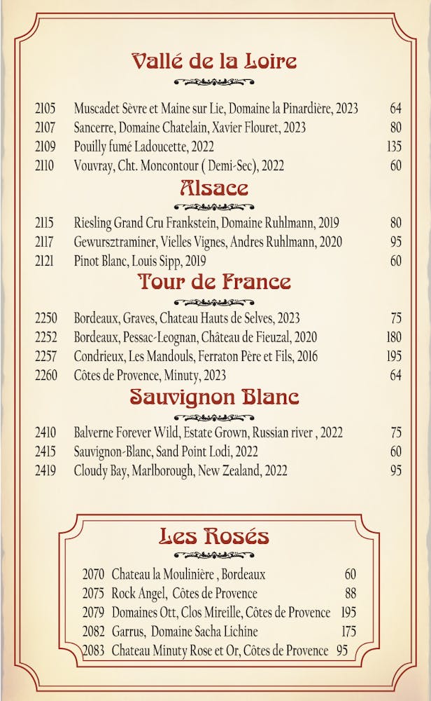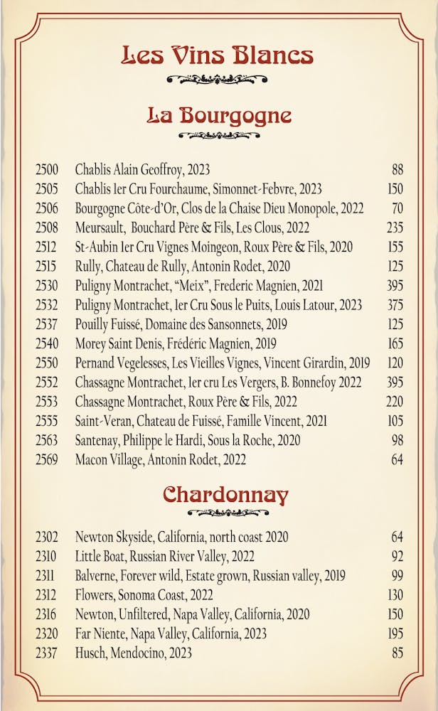 - Wine List